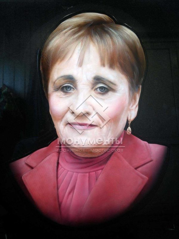 Цветной портрет на гранитном камне в виде церкви из цельного куска! Портрет совмещен из двух фотографий.