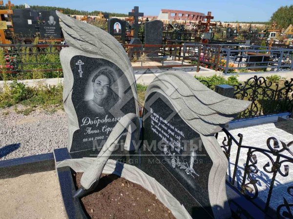 Надгробная композиция-комплекс из большого количества деталей в виде книги. За основу взят гранит Габбро-диабаз, а вставки выполнены из полудрагоценного Шокшинского кварцита. Камень крайне сложен в обработке! Декор и надписи покрыты сусальным золотом!
