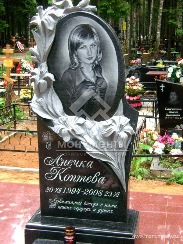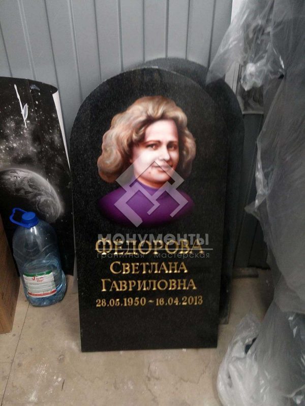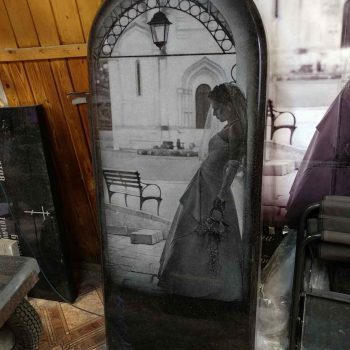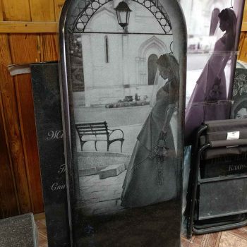 Красивый графический портрет невесты, классической формы на черном граните — «Габбро-диабаз». Предварительно был подготовлен индивидуальный эскиз.