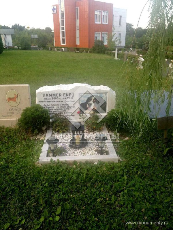 Надгробие домашнему любимцу в виде сердца из отечественного камня из Карелии.