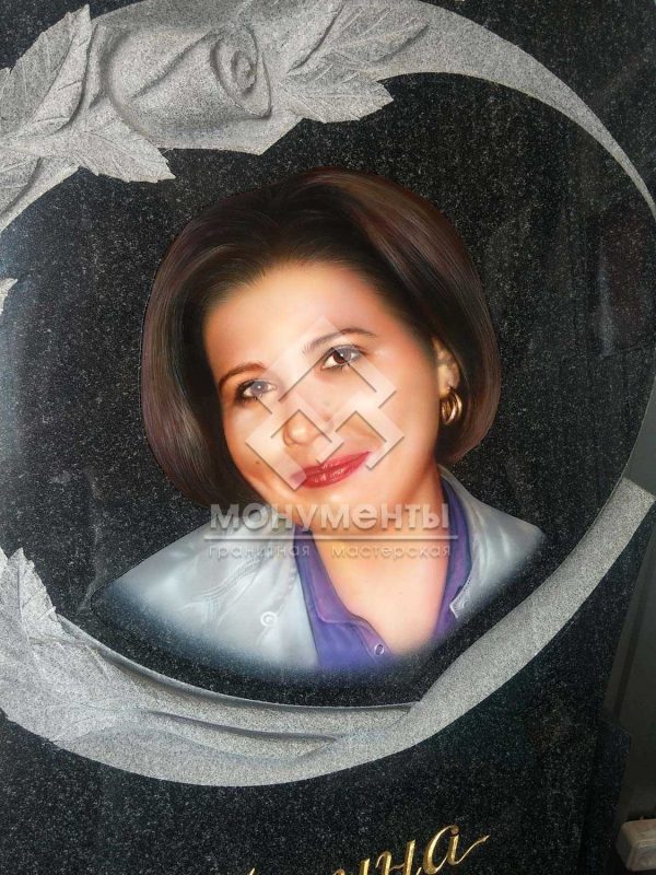Надгробная композиция-комплекс из нескольких плит и видов камня выполненных в виде сквозного креста, и барельефа летящего журавля.